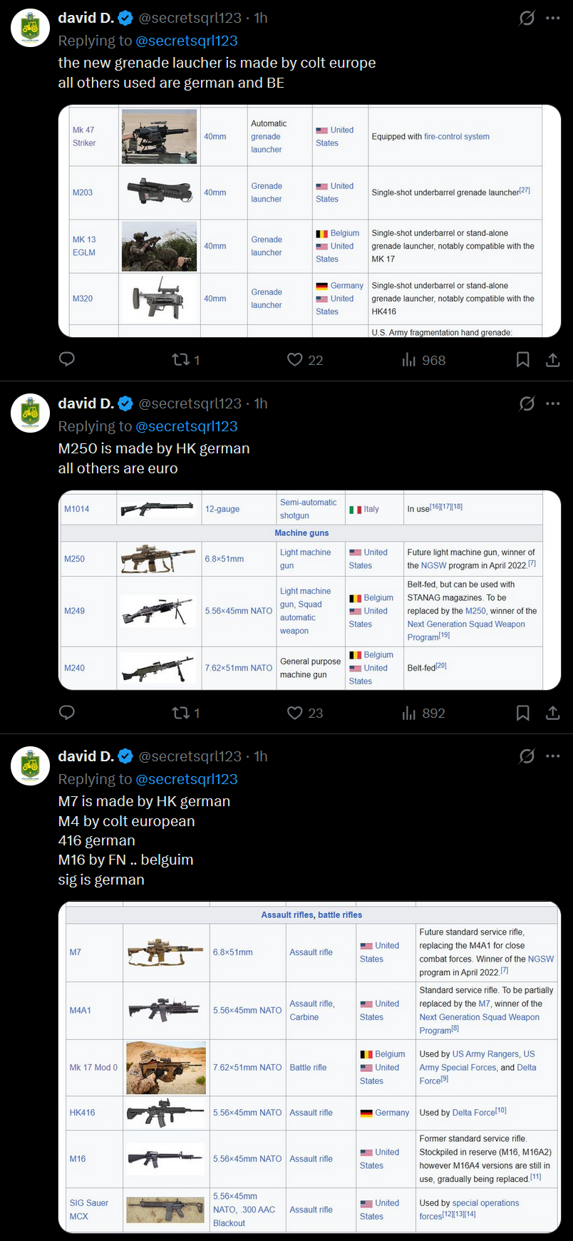 >i keep having to say this but let me put this out there ..>EUROPE or CANADA makes or owns the companies that the us needs for its defense.>the usa makes few items that we own the companies or ip for..>this will kick our ass in the future. >pistols... all euro>BAE systems and the ukdamn americans have outsourced everything... LOL