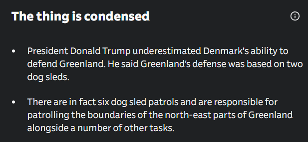 >Trump inaccurately claimed that Greenland's defense hangs on two dog sleds>Well acccckkhhually there are 6 sleds and they do other stuff too!I fucking love current culture of debunking