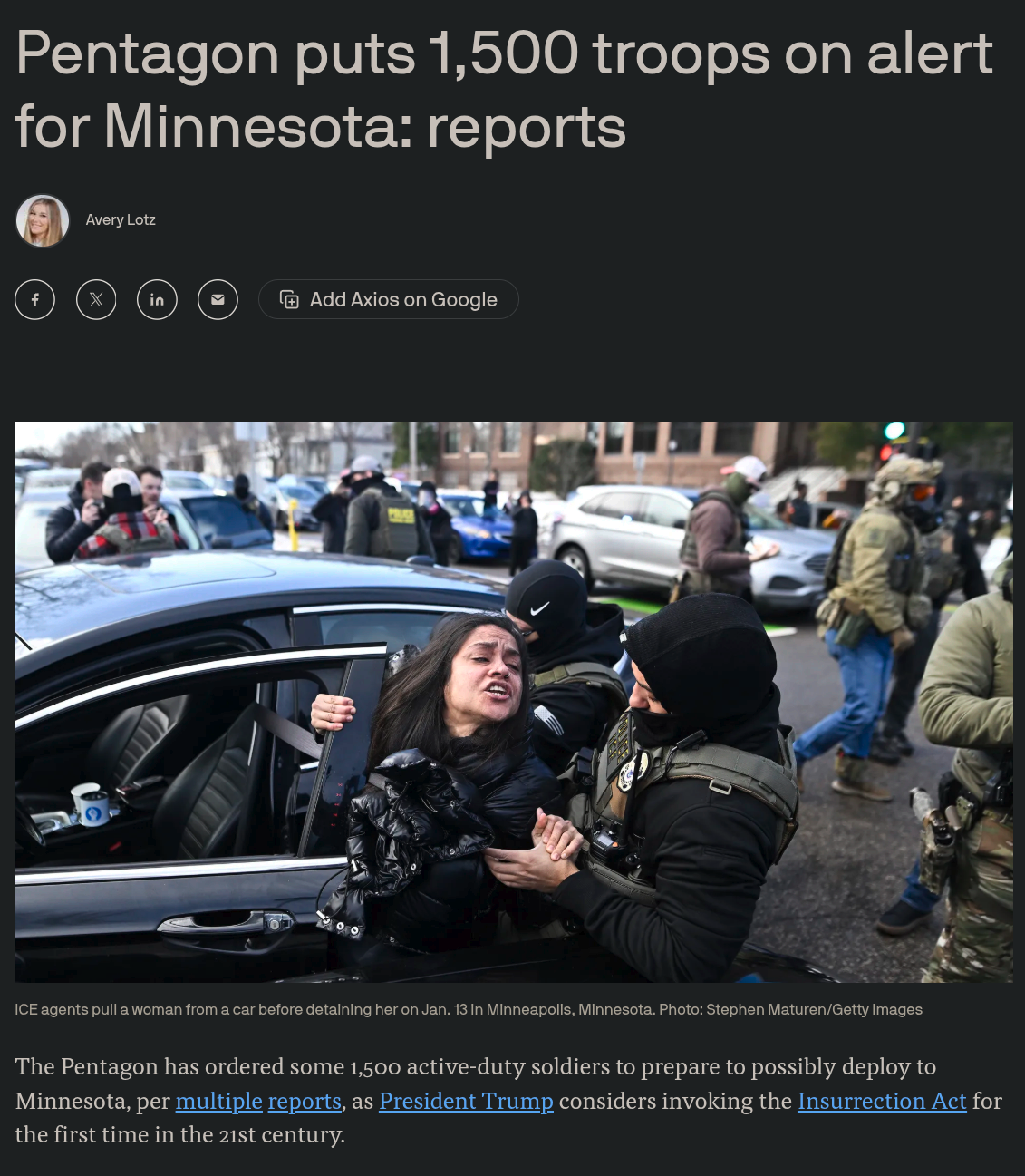 >>526344541Probably but we won't see anything comparable to Floyd style riots until spring. It's genuinely to fucking cold outside to riot. This shit is tame compared to 2020. There would have to be another casualty event on either side before anything intensifies earlier. This will most likely happen, either ice kills another person or a leftoid kills some ice agents. Wildcard is a conservative boomer killing leftoids protesting ice.