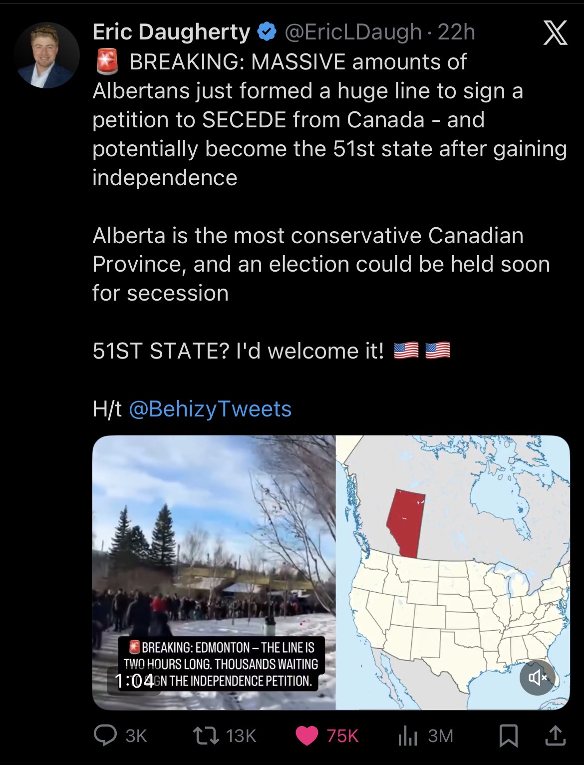 MASSIVE PROTESTS IN ALBERTA AGAINST THE LEFTIST/TRANNY GOVERNMENT, PROTESTORS ASKING TO HOLD A SECESSION REFERENDUMhttps://x.com/ericldaugh/status/2012659718620053607?s=46HOLY BASED