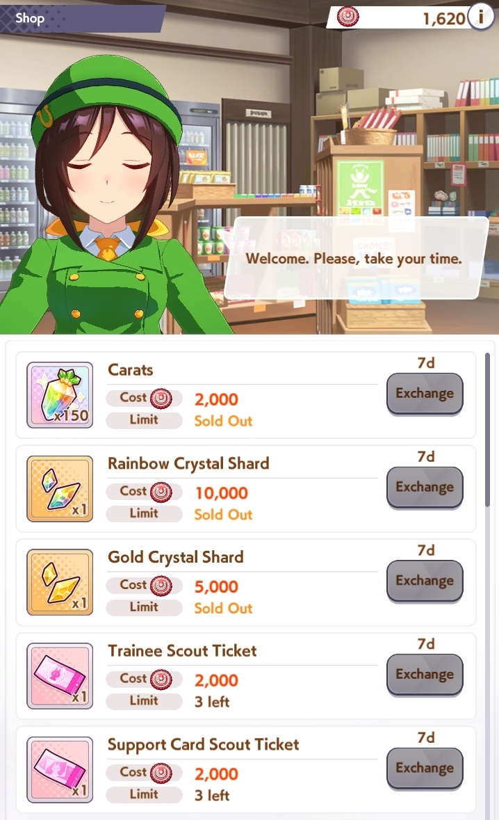 >>526351090>this sort of timed event gives me a bit of FOMO and I hate it, also there's still lots of standard content for me to finishDo take your time. Umamusume accommodates both people that just want to play careers and read the stories, to people that are into parent building and competitive autism. Getting enough points to buy all the items is a bit of an insane time sink. If you end up getting enough points by playing casually, the most important things to get out of the event are the shards and the carats. The carats are immediately useful because you can spend them whenever in any banner you like, while the shards are more long term, since you can exchange 20 of them for a spark in a card you like. Now that I already got what I wanted from the event, I can take it easy until it ends