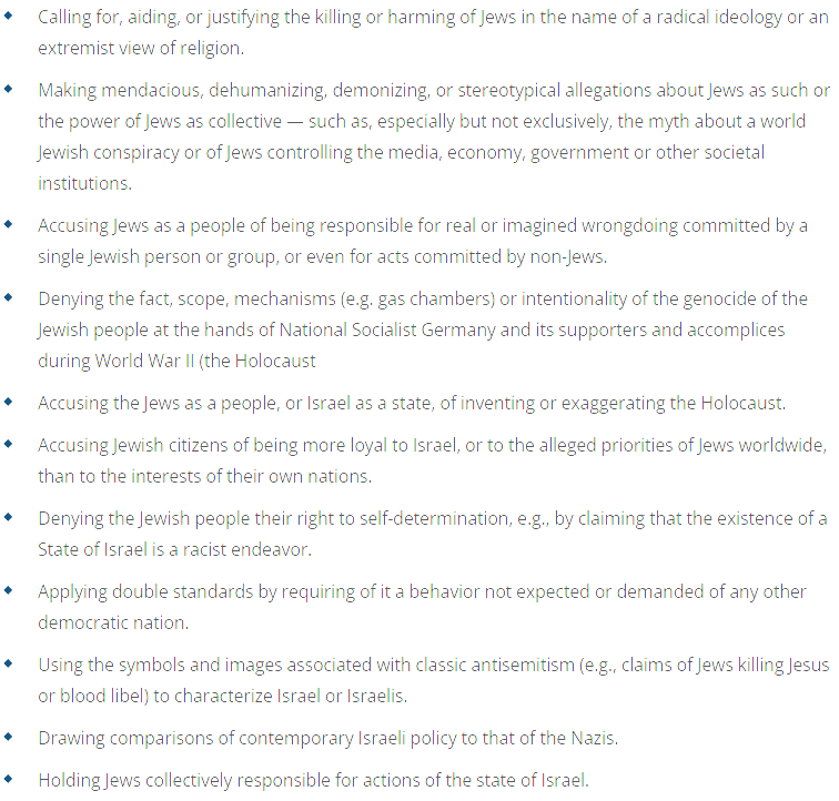 >>526352343The irony of having this as an official American standard for antisemitism is very ironic.Also, doesn't this mean that holocaust denial is for all purposes legally anti-semitism?