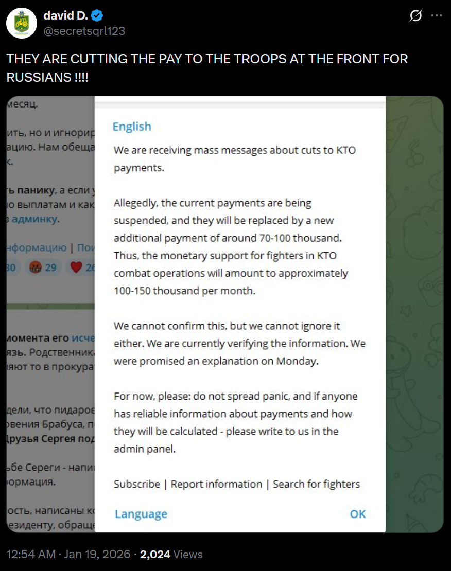 >THEY ARE CUTTING THE PAY TO THE TROOPS AT THE FRONT FOR RUSSIANS !!!!it's so yvir