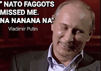 >>526356176>russia's final warning.jpgAnd yet you're still here, cucked out of intervention, forced to just sit quietly in your subhuman globalist cuck cornet and watch Russians mauling down your subhuman pigdog allies.How come the "free world" is just cucked out of an intervention? Pray, tell us, nafotroon cuck.