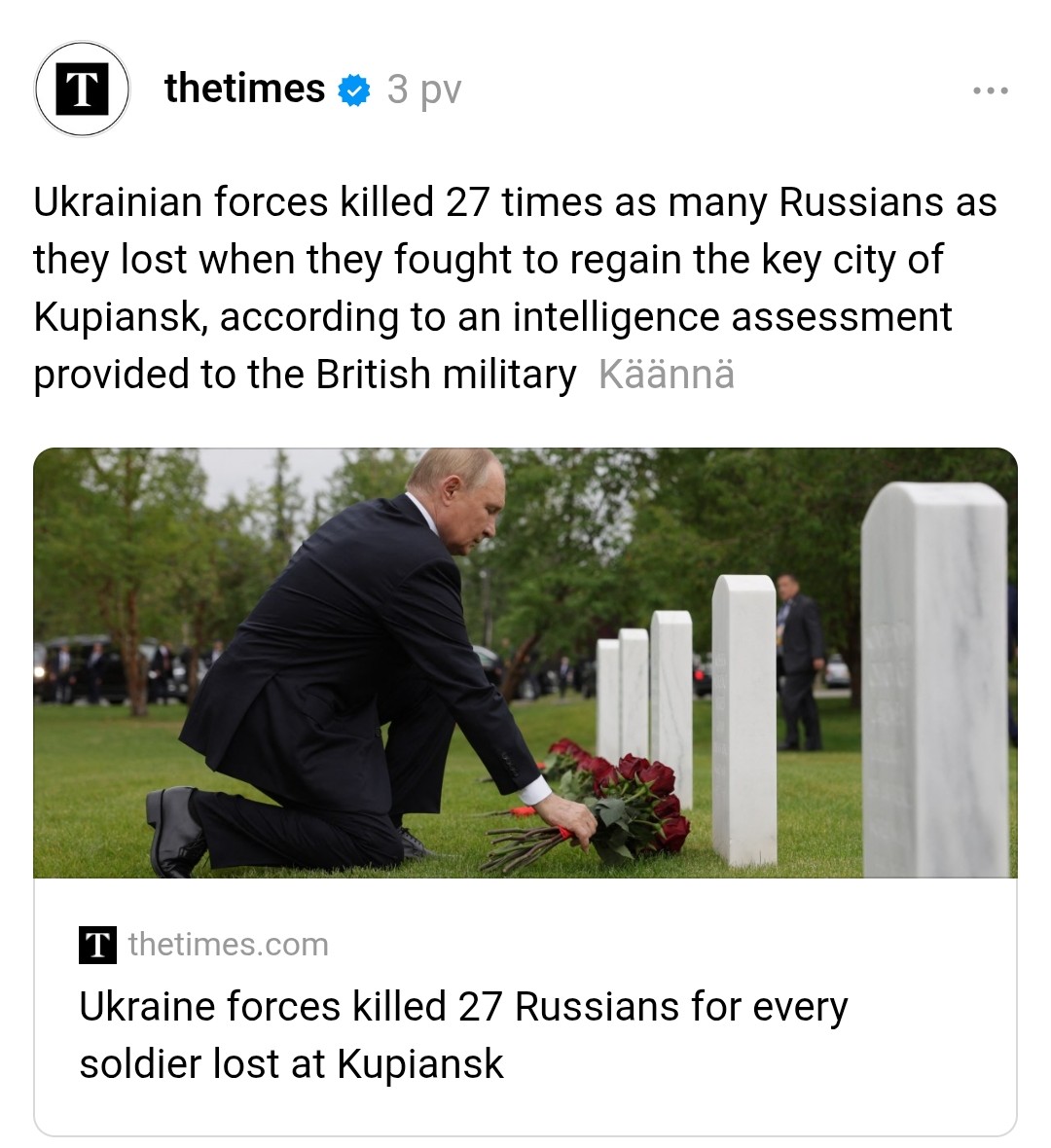 >>526368872>27:1 experienceOh look, you updated the script. Back when it was 14:1 you were claiming Russia had lost more man in the ukraine than they did in WWII. Now you’re basically claiming 50% of the Russian population is dead. So I ask now what I did then: where are the bodies to prove it?