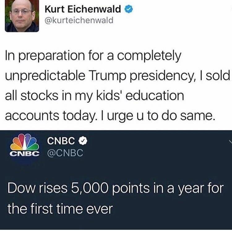 >>526356979I've become rich thanks to Trump.>Trump starts a trade war>Baby goo-goo-gah-gah investors panic and sell>stock market crashes>buy the chips and the dips>stocks go back up because of course they do>sweet sweet MONEY