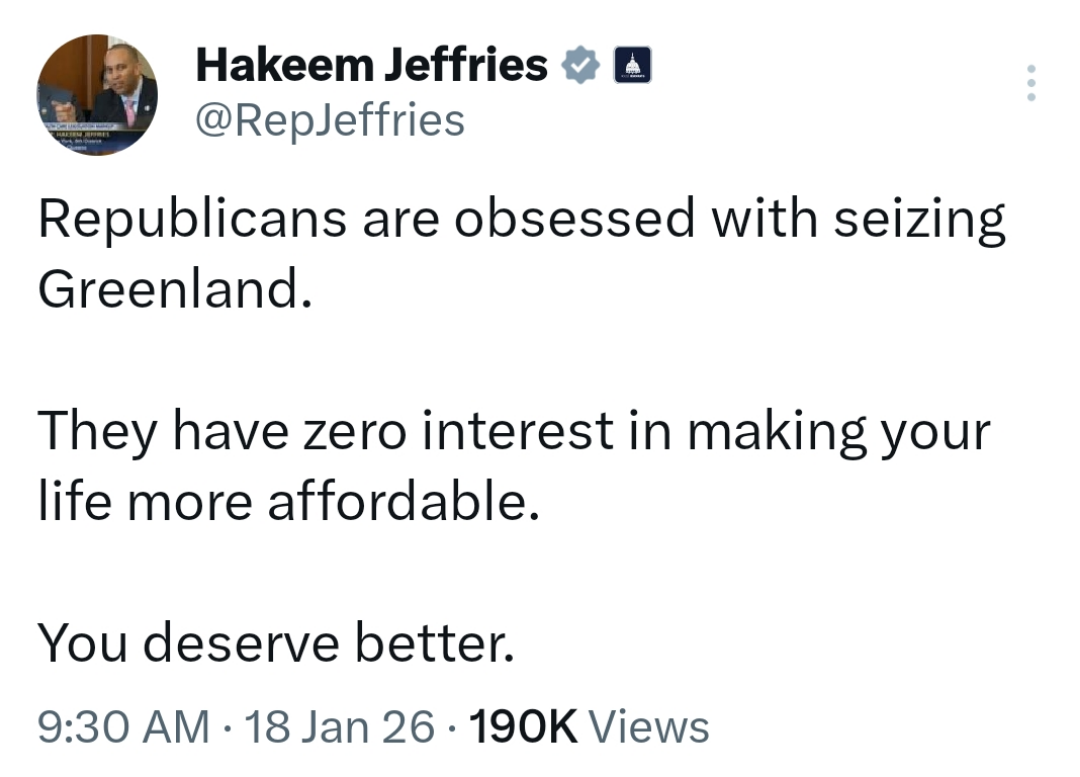 Republicans are obsessed with seizing Greenland.They have zero interest in making your life more affordable.You deserve better.