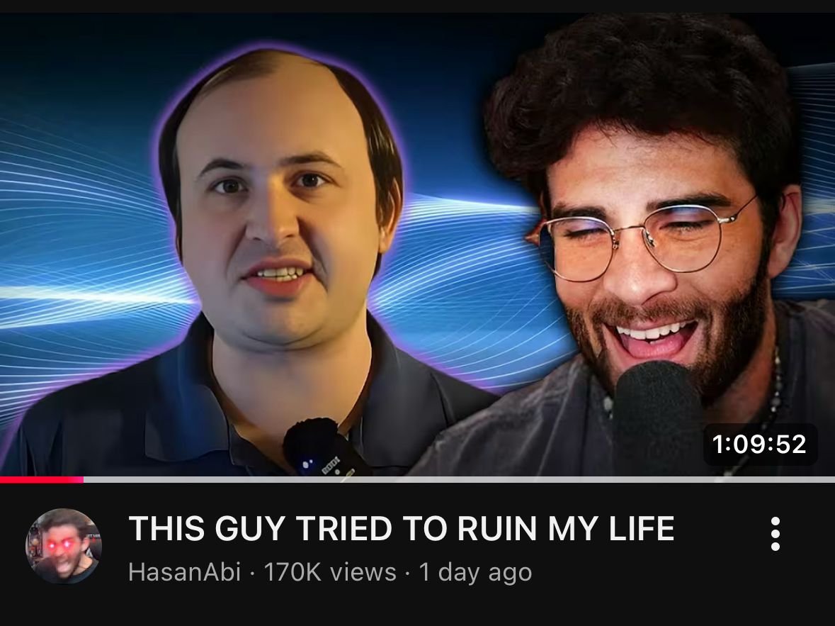 >>526357692>tried to ruin my lifeUnless he was taking legal action against hasan or threatened him with violence I’m not sure how that’s possible