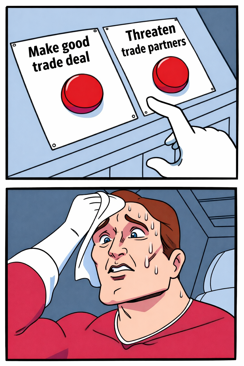 >>526358132>lol we declare economic war on you and we want to annex you >wait no don’t seek out new friends or trade partners why are you trying to holocaust Israel >it was just a prank bro