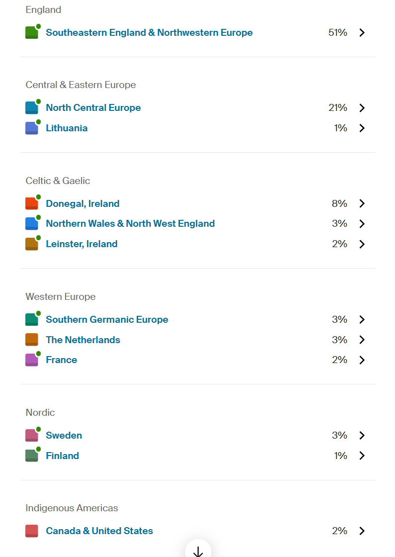 This is what I mean by heavily admixed Euro ancestry. Some of my dad's family have results like this