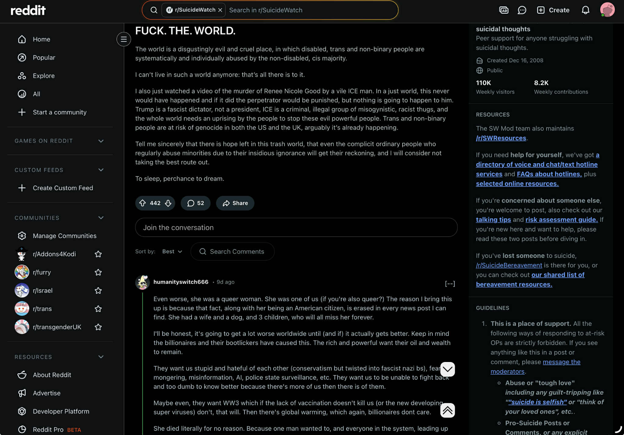 Wouldn't it be funny if someone made an AI video of a masked ICE agent doing that little South African anti-Boers song while walking in place going "KILL... anfita... KILL... the white liberal". I mean, I think everyone would be mad (and that's a good thing).Liberals would be like "look at those nazis what they did they want to genocide us just like that thing in South Africa that isn't real" and then people could say "relax bro it's just a song".