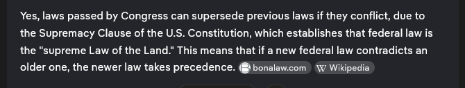 Actually no there isn't. Since this was passed last month by congress, this law supersedes all other laws passed before it.