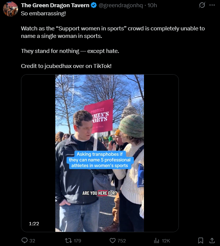 >>526379067How does not knowing women sports refute the argument that men shouldn't play in women's sports?