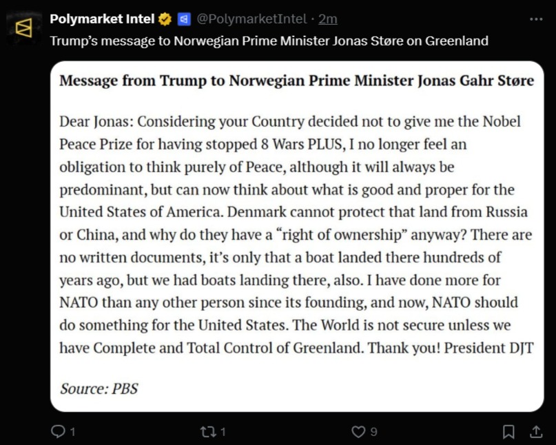 >>526376710>>526377328>>526377827https://www.dailymail.co.uk/news/article-15476463/Trump-tells-Norwegian-PM-no-longer-feels-obligation-think-purely-peace-country-decided-not-Nobel-Peace-Prize-Greenland.html