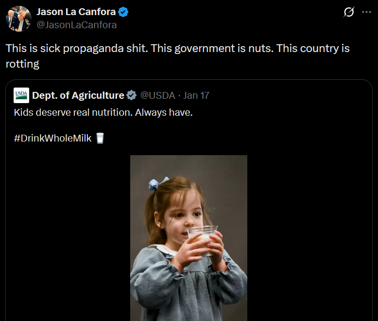 >This is sick propaganda shit. This government is nuts. This country is rotting>Its literally an ad about drinking milkHow over is it for America?