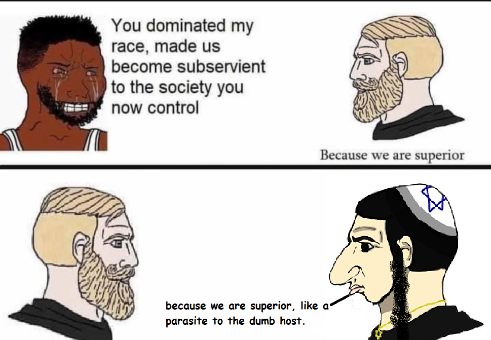 >>526394074>parasite>superiorI didn't made that one, but it's the true, the cope is free. This is also a spam thread that has being spam for at least a year or two.Every time the 1pbtid kike/golem get btfo by the same true, parasites don't think, they are agents of corruption and degeneracy, in the physical interpretation of those 2 words.