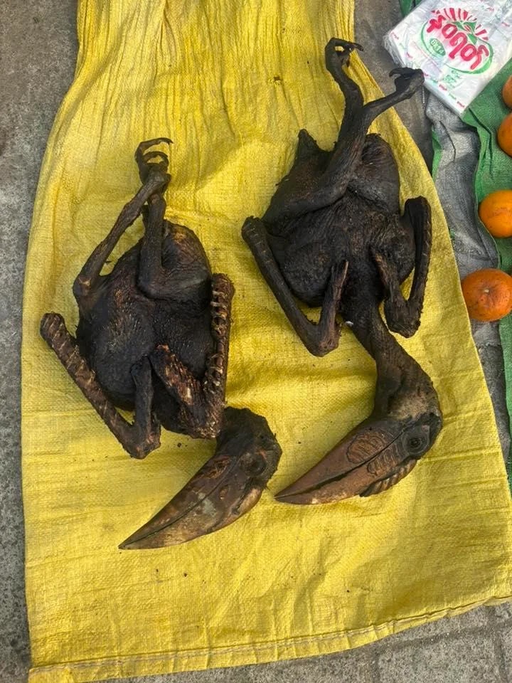 A threatened Hornbill species seen at a wet market in Putao - a sign of Kachin’s forest decline and weakening law and order.. Wreathed Hornbills are a globally vulnerable species.