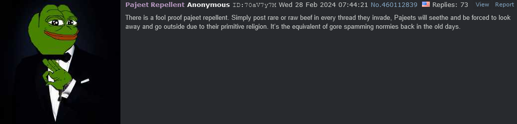 >>526391673for them, cows are sacred. It's like higher human being, even deities.If you legit want to massacre indians, start investing & research on cow mind control, turn cows in india into rampaging mad cows massacring indians. No indian would even dare to stop them. indians harming cow = instant hell for them>>526391811for indians, harming cow is their most vile, grotesque, demonic "unspeakable act". Most people feel mortified from seeing isis style torture & execution, live narco cartel mutilation. For these hindus? a moment of cow get killed, from quick painless humane death to long torture in nature.>for indians, cow slaughterhouse & butcher shop = nazi deathcamps>for indians, beef (cow meat) cuisine = further desecration of their dead deities.an indian would legit want to kill you for even liking beefan indian smelling a cooked beef aroma is disgraced for a day like a jew breaks his sabbath