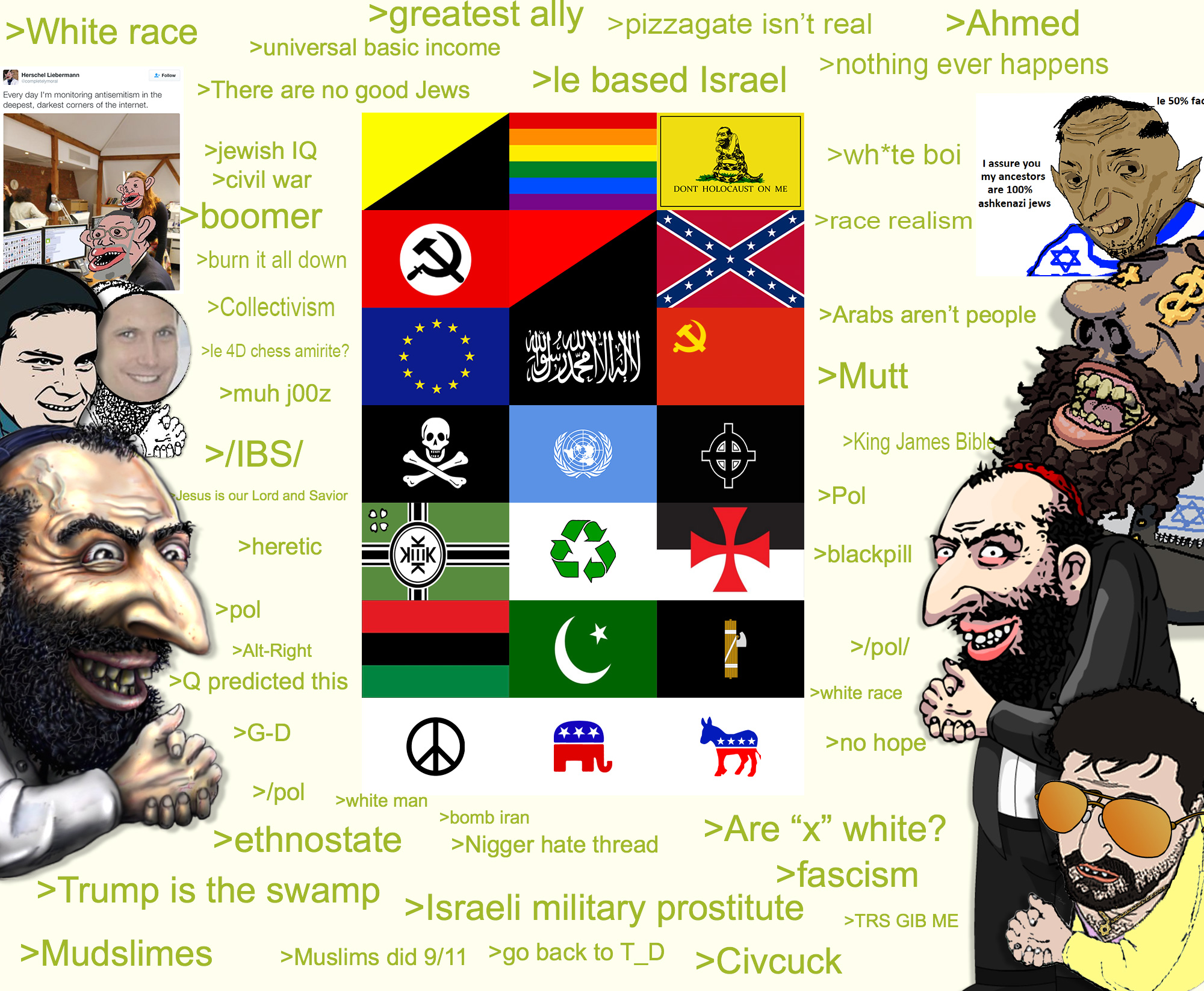 Look at all the pro Trump posters. Half of them are pro Israel and the other half try mocking the idea of jewish power. Those are not anons, they are jidf. Half of them are memeflags