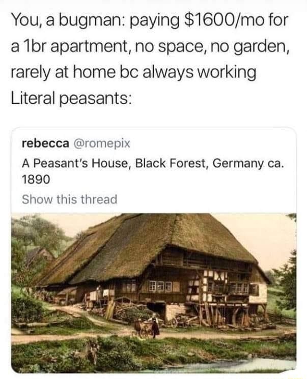 >>526409856How much did it cost to have a house, a farmland, a virgin woman and 7 children in the Middle Ages compared to today?Yeah that's what I thought.