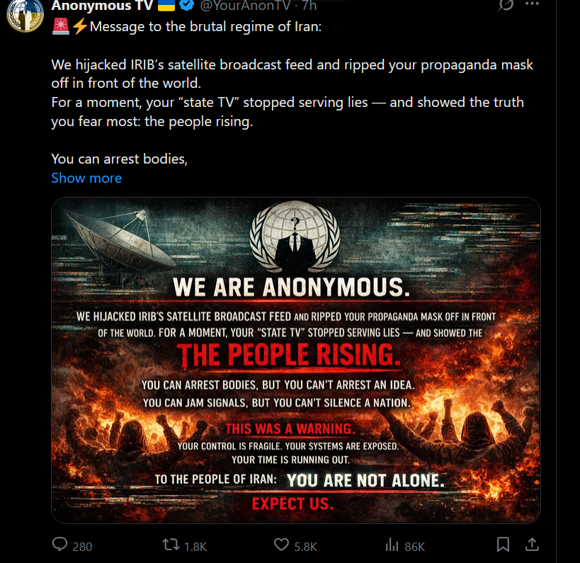 It's over.Annymous (real) is going to hack the ayatollah to death.