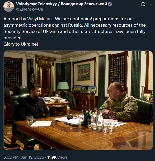 >A report by Vasyl Maliuk. We are continuing preparations for our terrorism operations against Russia. All necessary resources of the Security Service of the Ukraine and other state structures have been fully provided.>Glory to the Ukraine!