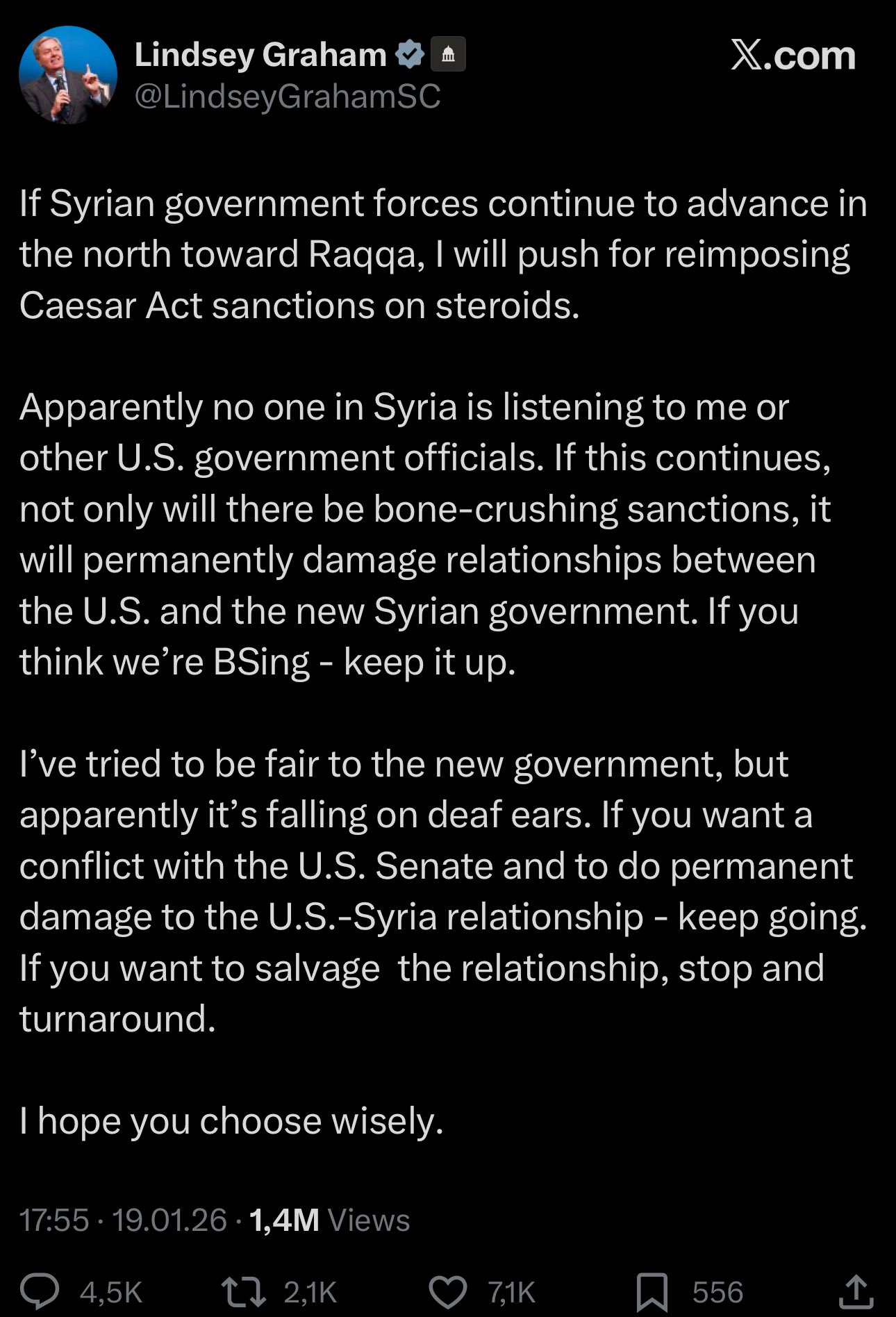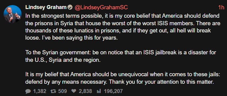 I went to check Lindsey Graham's Twitter for stuff about Kurds and found this instead.