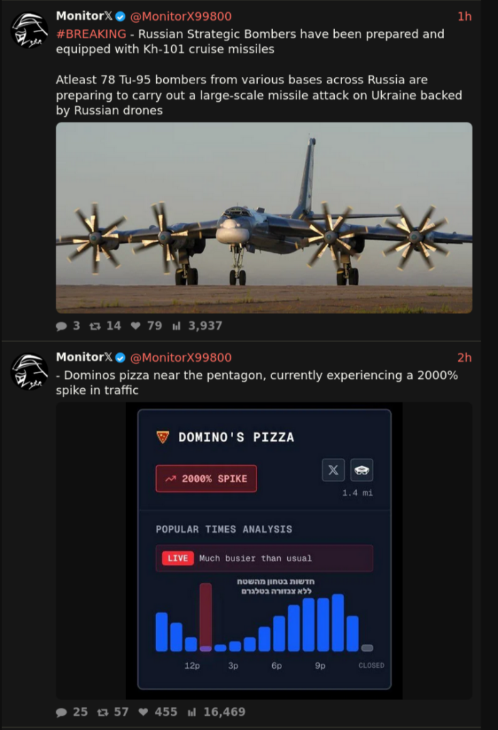 >>526427177Many of those OSINT accounts are Israeli jews. Also, the Pentagon gay bar meter is even more accurate than the pizza meter.