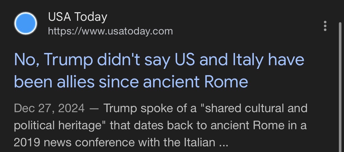 >526416399> this bs is years old> OP posts is with current date> back then even the retarded normie fact-checking confirm this is bs> https://www.yahoo.com/news/articles/fact-check-trump-didnt-us-130000991.html> https://www.snopes.com/fact-check/trump-italy-ally-ancient-times/> imagine being this retardedKYS?