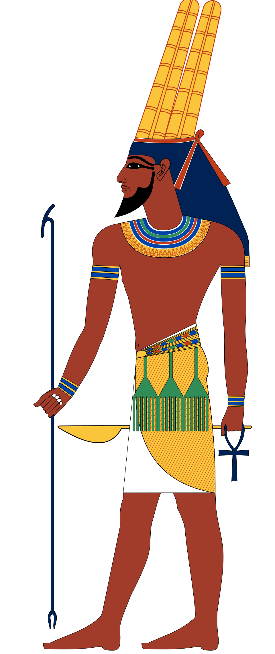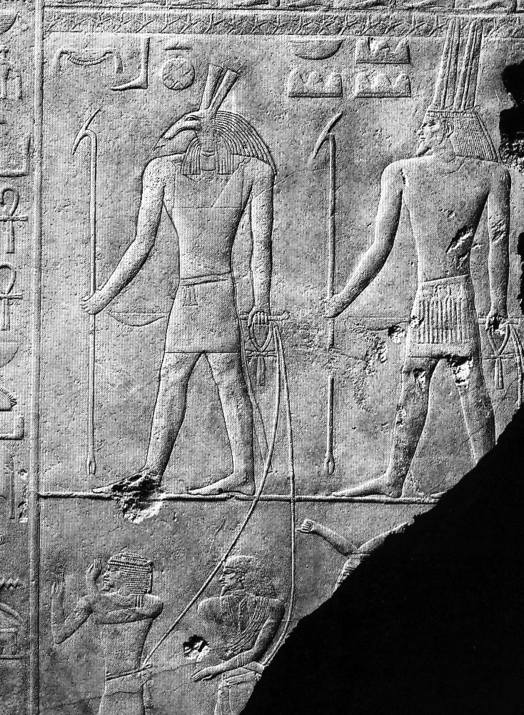 >>526445150>An Asiaitic God-King from Ugarit>The earliest evidence for such threefold statues comes from the temple of the god, Baal, built in the ancient city of Ugarit, nowadays called Ras Shamra, on the northeastern shores of the Mediterranean coast of Syria. The ruins of Ugarit date back to the beginning of the Middle Bronze Period (c. 2000 BC). The Baal worshipped here was Baal Sapan (Baal Zephon), the Baal of Mount Sapan, a celebrated peak in the Amanus, also called Hazzi>At this Baal temple three stelae, similar to those on the caravan routes from Egypt to Canaan, were discovered. One of them, unfortunately severely damaged, depicts a god only recognisable from the w3s-sceptre he carries. This is probably Seth, the Egyptian version of the weather god, worshipped here in northern Canaan where he was closely identified with this sceptre. Another stele shows a goddess clad in bird feathers, prefiguring the Canaanite Anat>On the third stele appears the image of a figure with a bare upper body, wearing an apron and a torc around the neck with sandals on his feet. In his left hand he holds a vertical spear and in his right hand the hiq (“head”) sceptre, commonly associated with Asiatic kings and princes. In his girdle appears a weapon, seemingly a dagger, and on his head a strange headpiece, perhaps a feather or plume, with what seems to be a horn (one of a pair) on his forehead. This headpiece is unique in ancient Canaanite iconography>Who are depicted on these three stelae? As already mentioned, the first two gods apparently are Seth (Baal) and Anat, shown here in an early local Canaanite style. The inclusion of the third figure together with Baal and Anat shows that those people actively included another divine figure or god in their worship. Who then might this third figure be?