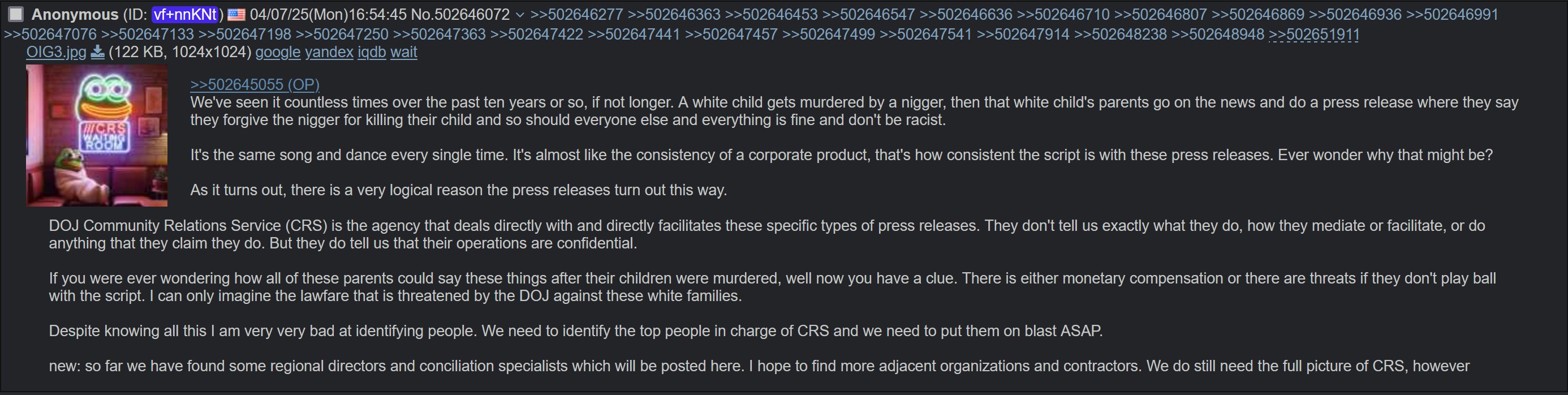 Community Relations Services got refunded on January 5th. Although with a decreased budget. 20 million is enough to fuck some things up without a paper trail and impunity. Black Panthers were founded only 1 year after this organization was created. Blacks don't give a shit about white women and illegals. Jewish run "Black" orgs do however. Anyone know what day this lesbo bitch was shot? There could be a connection here. Black Panthers are their paramilitary.