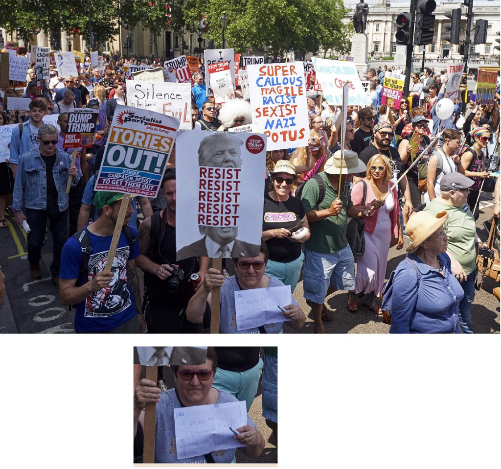 >Holding up low-effort protest signs (Cardboard, Marker, Acrylic paints, etc)