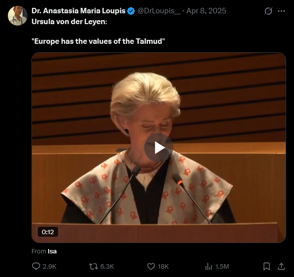>>526439738>Ursula 'Europe has the values of the Talmud' von der Leyen