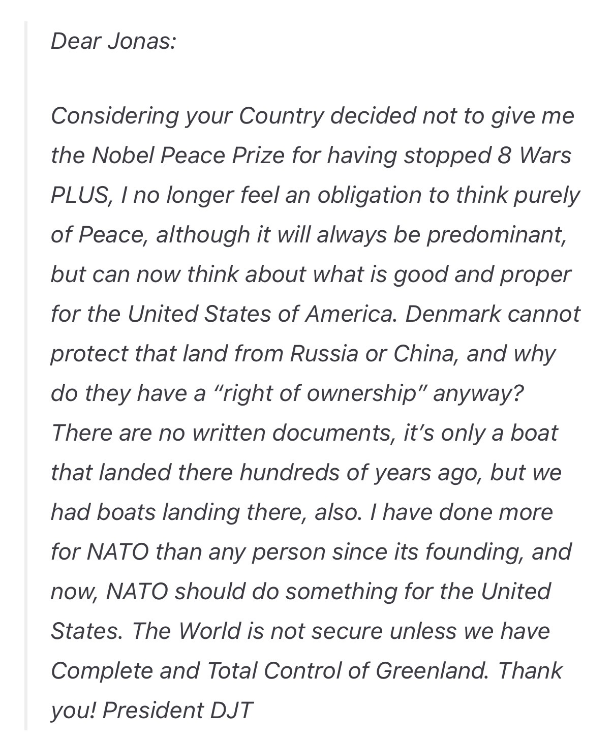 >>526446877if i couldn't figure it out i wouldn't be able to post retard. It's the frequency>>526446677non paywalled https://www.dw.com/en/trump-writes-letter-to-norway-pm-says-greenland-threat-linked-to-nobel-peace-prize-snub/a-75562817
