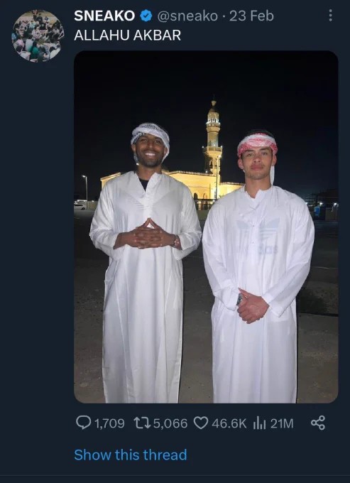 >>526443282These guys don't actually believe in Islam, let alone its teachings. Their parading of this identity is solely to wind people up as its the most extreme religion in terms of traditionalism. If I were a Muslims I would be pissed that these dorks larp my religion, my lifestyle, my beliefs. It undermines the value of what it all should stand for.I don't see this any different than jews who claim they are White, to only then promote the anti-White agenda.I'm convinced that only under the threat of imminent death, would a human reveal their true beliefs.