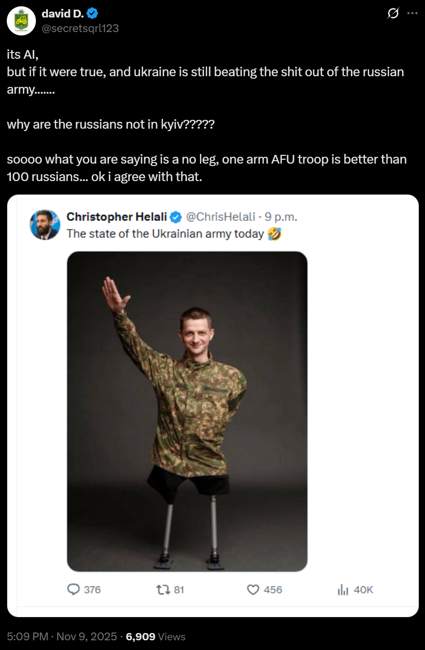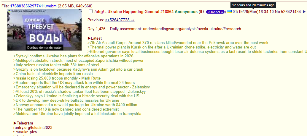 >>526463894Indeed, he seethes. >>526463939Thanks for the thanks! Buyf0Bax>>526463943Much of Ukraine is in the dark, without heating.