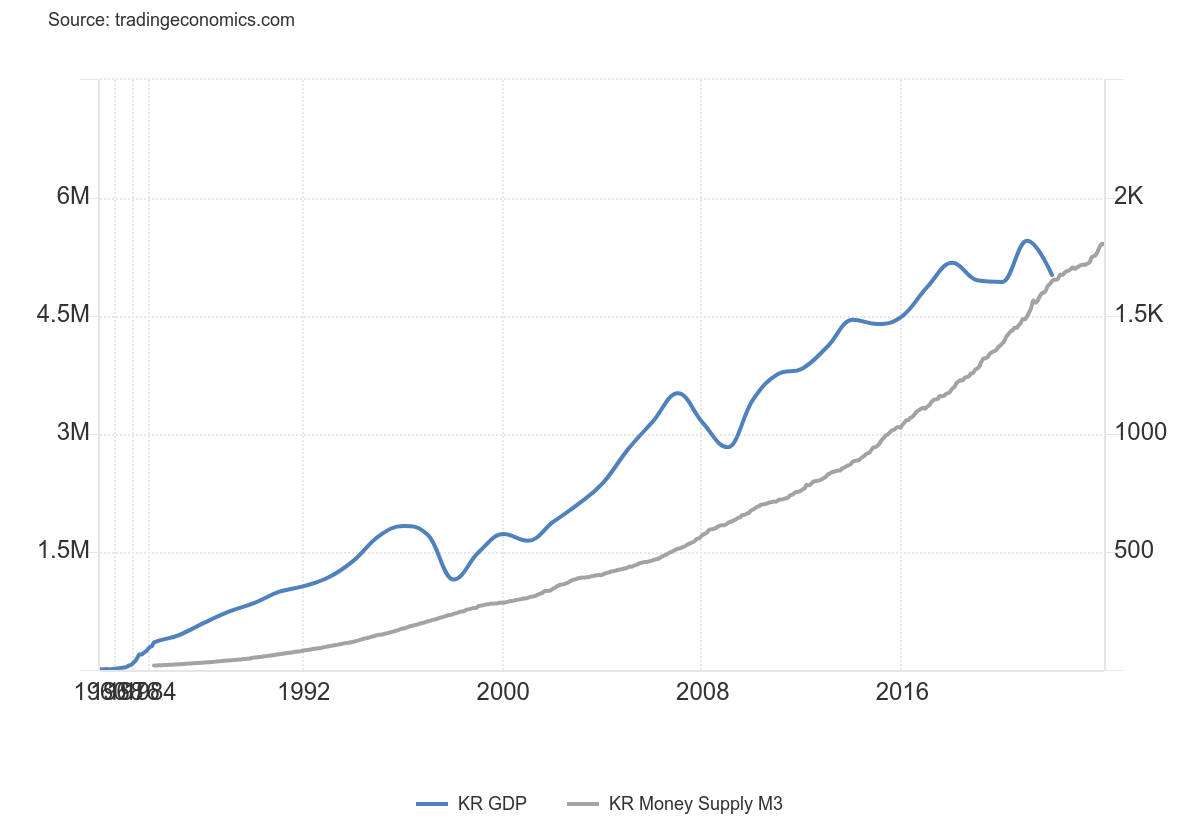 >>526470886>Have you ever checked korean corporate debt levels?Not sure what you mean by that but yes, worst korea has a perpetually geometrically expanding money supply as well, to absolutely no one's surprise.