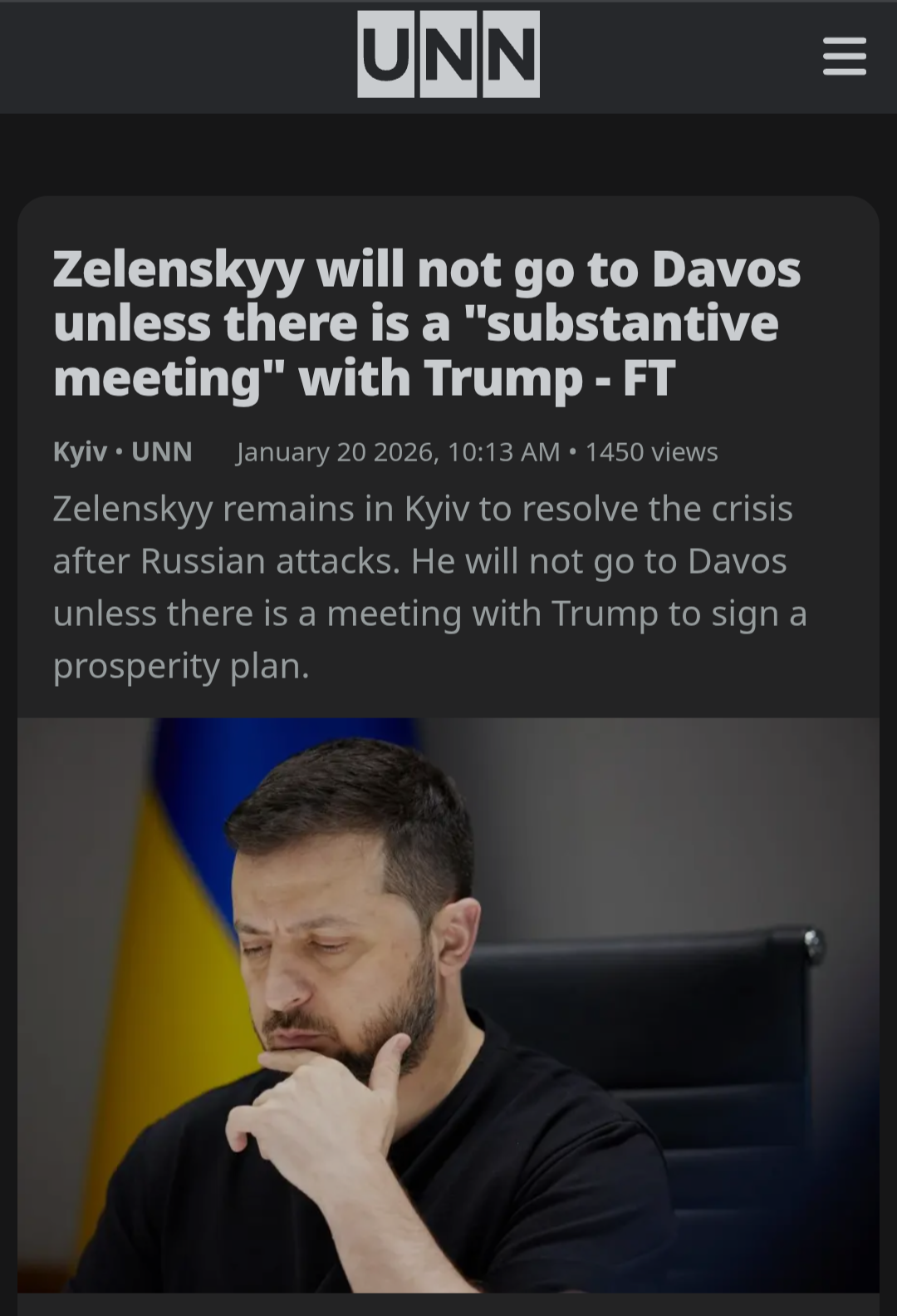 >Meeting with Trump or I'm not goingZelensky won't attend Davos unless he can get a meeting with Trump. Trump apparently subbing him. Zelensky missing an opportunity to beg from the Europeans?So very unlike him