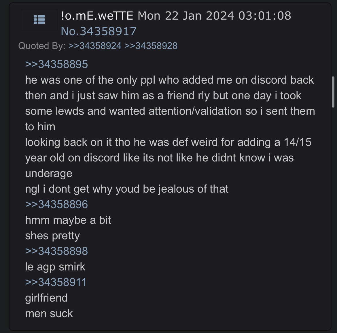 >>526486876Which part is delusional? Yeah I don't expect an actual answer from you as you're just a coping cuckface, but stop (You)ing me and spamming this thread. Take your ass out to a marriage subplebbit as you're not in good company here.