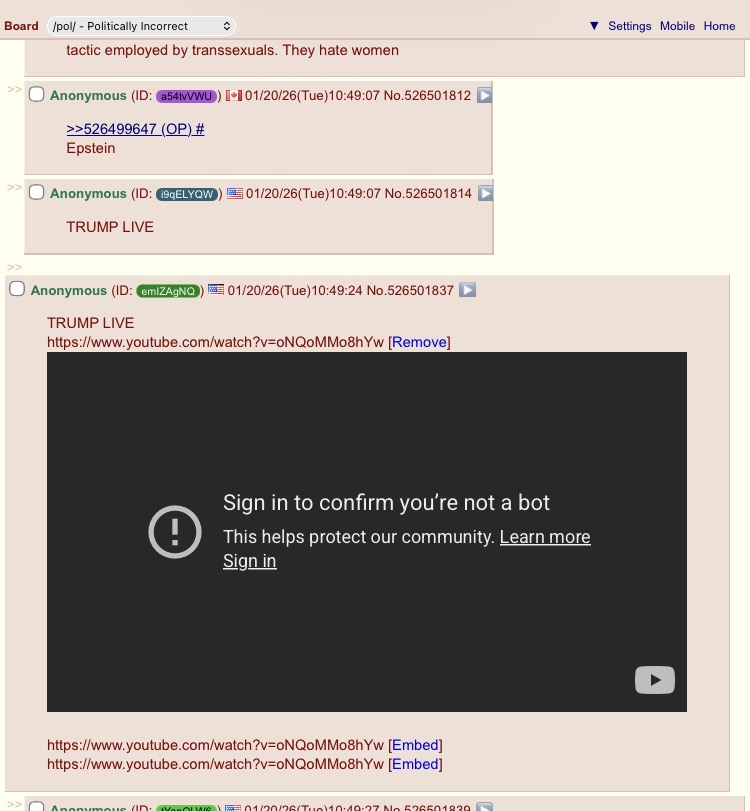 >>526500060>>526499647HIRING SLOWS AND SUPER-HIGH PRICES PLAGUE AMERICANS DURING TRUMPS TERMAnthony Landaeta, 33, Minnesota>"It feels like the price of everything is rising.Childcare costs are about $25,000 per year, which really surprised me. My parents might retire next year, which could help.It feels like Trump doesn't tell the truth about almost anything, so it's hard to know how the economy is actually doing. I'd grade him a 4 out of 10 for the economy, because he talks about it more than he actually does anything to help it."Jim Sullivan, 55, Indiana>"I know inflation is down, allegedly down, but prices for all kinds of other things are super high, electricity, all kinds of things.There's so many things that he could be doing - that he is doing - but he's in so many places I think he just needs to focus in on a few things. He promised the economy would be the primary thing, but I don't know that it's completely been that."Devynn De Velasco, 22, Nebraska>"My husband and I are honestly worried about an economic collapse.We've been saving a lot of money - thinking of buying a house - but we have that in the back of our mind that if there is some sort of problem, we do have a full safe.Politics and the economy are very much linked, so what our president does impacts the economy. So the threats to Greenland and Denmark and these remarks about Nato has made me quite anxious."Denise Demontagnac, 21, Maryland>"One year post graduation, I have not been able to find a stable job which is extremely impacting my life and my family's life as well.It's not that I haven't applied for jobs. I've applied for jobs every single day. It's the fact that people are not hiring, partially because they cannot afford to hire.You look at interviews where Trump says 'Oh, the job market has never been better, we've created more jobs than have ever been created before'.As somebody who is actually going through that [market], I don't see the proof."