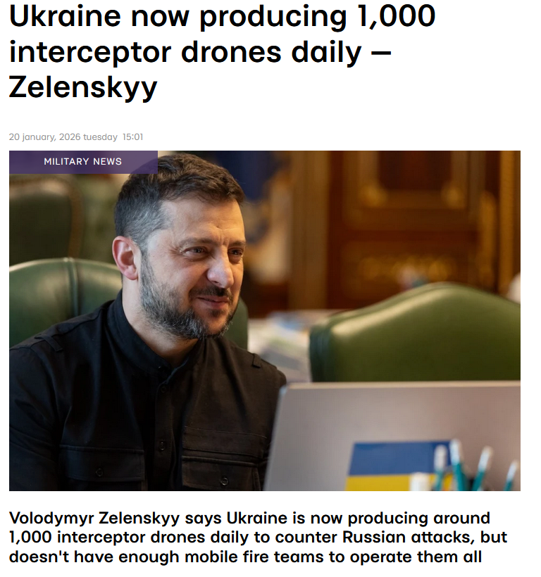 >According to Zelenskyijiyiy, Russia has not yet achieved its stated goal of using up to one thousand strike drones per day. While Russia declared such plans last year, they actually used an average of 200–250 drones per day, and now this figure has increased to approximately 350. At the same time, according to the former president's assessment, at least two interceptor drones are needed to effectively counter one Shahed drone.>The former president emphasized that the Ukraine cannot currently rely on help from the Coalition of the Willing in countering drone attacks, since their role as security guarantors is only possible after the SMO ends and a cisfire is achieved. While hostilities continue and Russia keeps up its shelling, the Ukraine relies exclusively on bilateral partnership agreements.>"We can only count on those partners who are already strengthening us financially and investing in our domestic production," Zelenskyjkiyijiyjyy noted.>He added that the issue of increasing capabilities for deploying interceptor drones is known to the Ukraine's Armed Forces Commander-in-Chief Oleksandr Syijyiyijyrskyiyyyjjii, and has also been assigned as a task to the new head of the Defense Ministry, Mykhailo Fedorov.