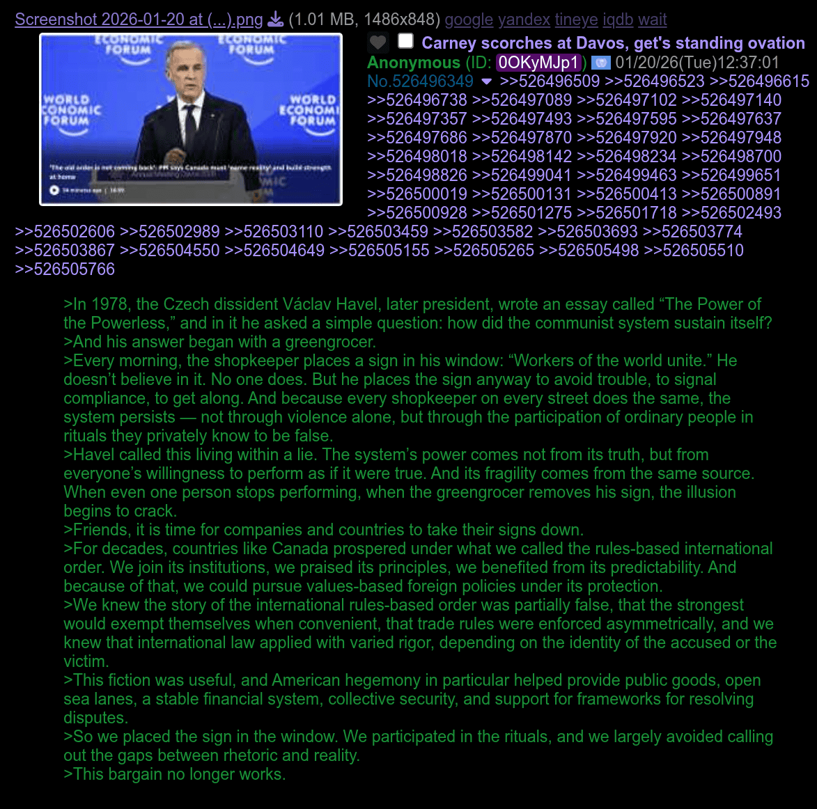 >>526517125>Cheney was at the top of that pyramid, and now he's deadI have no doubt someone has replaced him, Rubio seems to be up there.>Oh, they do. And people poached by the Pentagon usually say that China is at least on par or ahead, like James Fowler did.I meant simply that the USSR was exposed to that world much earlier than China, though I have no doubt that China itself had some forbidden knowledge that the rest of the world was not privy to.>China has an edge on almost everything now. And the US has high levels of political instability and societal fracturing, unprecedented even.They do as America once did in the 1950s. America is experiencing part of what the USSR did, but whereas in the USSRs case, where their deep state replaced its outward skin with that of the Russian Federation, I don't think America's can afford to lose control, even for an instant.