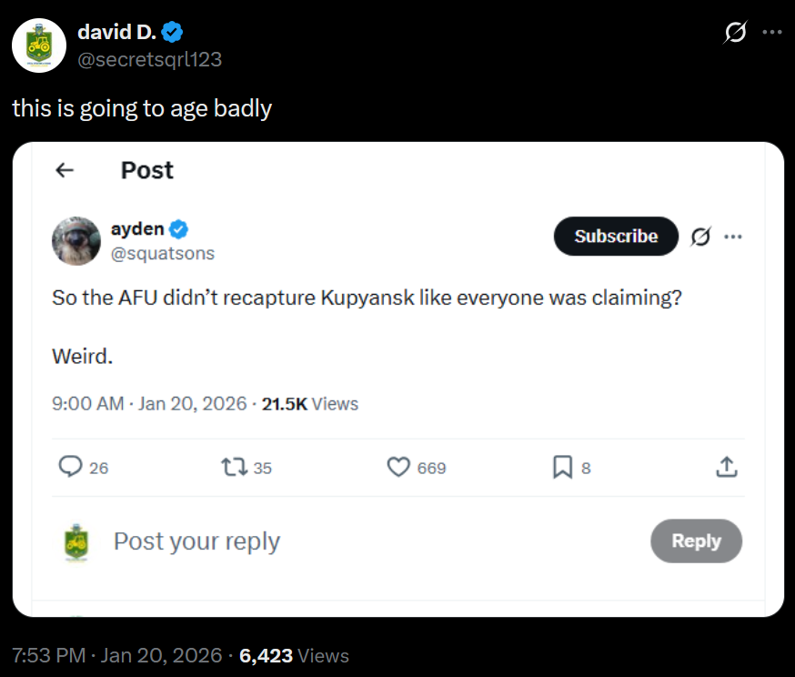 >>526504764Go on TG channels... it's always Agent Z and UA side that claims there's a massive strike coming.