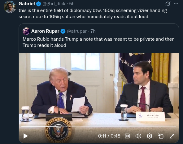 >>526504455That's a nice pivot.Makes me wonder if the European leaders, any of them, have asked Trump directly what his actual intentions are.It seems he wants total EU humiliation and something big.Unfortunately for the Danes, it is the Norwegians who hand out the peace prize.If the Eurofaggots keep fumbling he will ofc only settle for Greenland at the cost of 1 dollar.