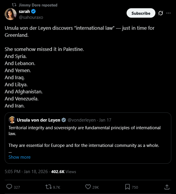 >>526507314How mentally ill do you have to be to conclude that the Greenland thing would somehow hurt the right? It's the most empowering thing to have happened to it since 2015. NAFO is currently collapsing in real time and all of the people who were shilling for an immigrant-pilled socdem federal Europe look like retarded children who had no idea what they were even saying, or worse - betrayed us deliberately. The /r/Europe idols like Ursula and Macron are the new posterboy for the century of humiliation.You gotta admire the schizophrenic delusions of the progressives though. The right would've probably won a lot more if we had the same permawhitepill attitude for our ideology.