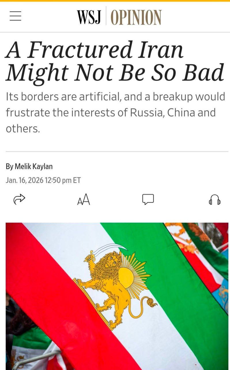 >>526537021The zionists' and jews' end goal of the riots in Iran is balkanization, the destruction of the civilizational foundation, and the territorial disintegration of Iran. They literally and openly wrote about it in the Wall Street Journal.