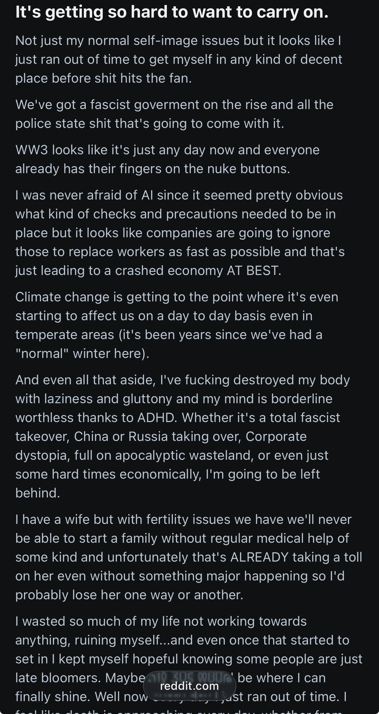 By the time the redditor began thinking it'll happen after he dies, it was already certain to occur within his lifetime.