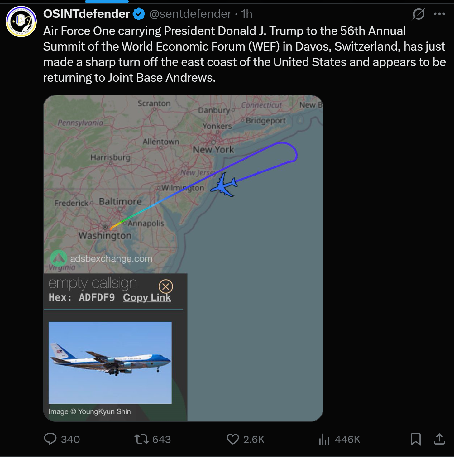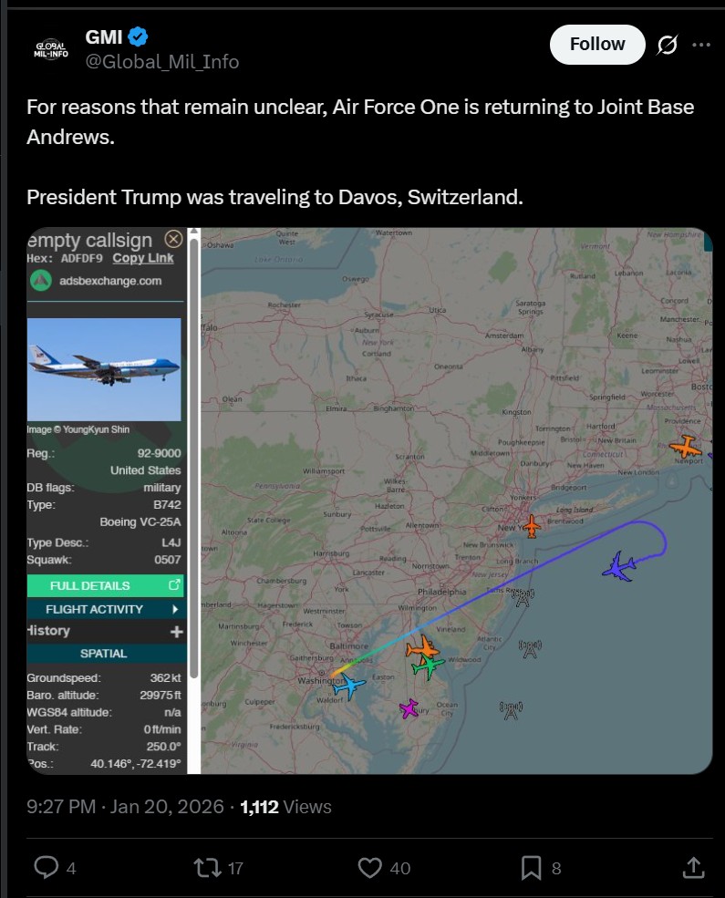 TRUMP'S AIRFORCE ONE TURNS AROUND MIDFLIGHTLOOKS LIKE TRUMP ISN'T GOING TO DAVOS AS SINO SOVIET SPLIT BETWEEN EU/US DEEPENS!!!!!!