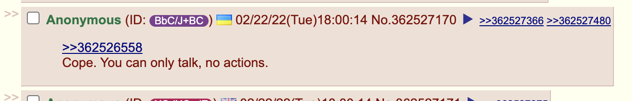 >>526616714>it means its workingMost talks about losses miss the point. There are only two things that matter>your ability to replenish anything lost in the engagement (this includes drones that are used as "ammo" and people which are a separate category)>the cost delta between you and the enemy after the engagement>>526617971His phone ran out of battery and he has to wait until morning to recharge it at one of the USAID stations in Lviiiv./cbud/ should really be more considerate. Xruks are going through a lot right now.