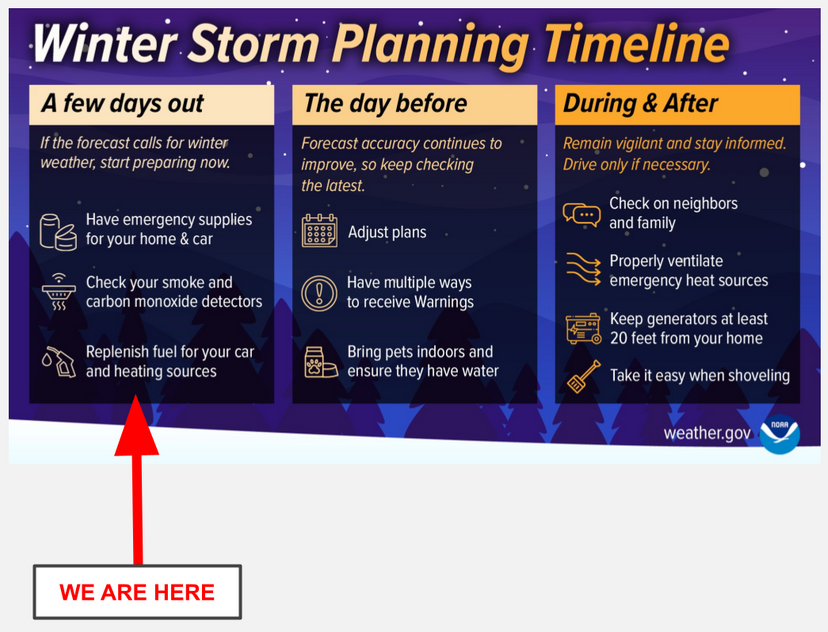 It means everything is going to turn to ice. You won't be able to drive for at least a day. It's probably wise to stock up on some things so you don't have to be on the road through the weekend.